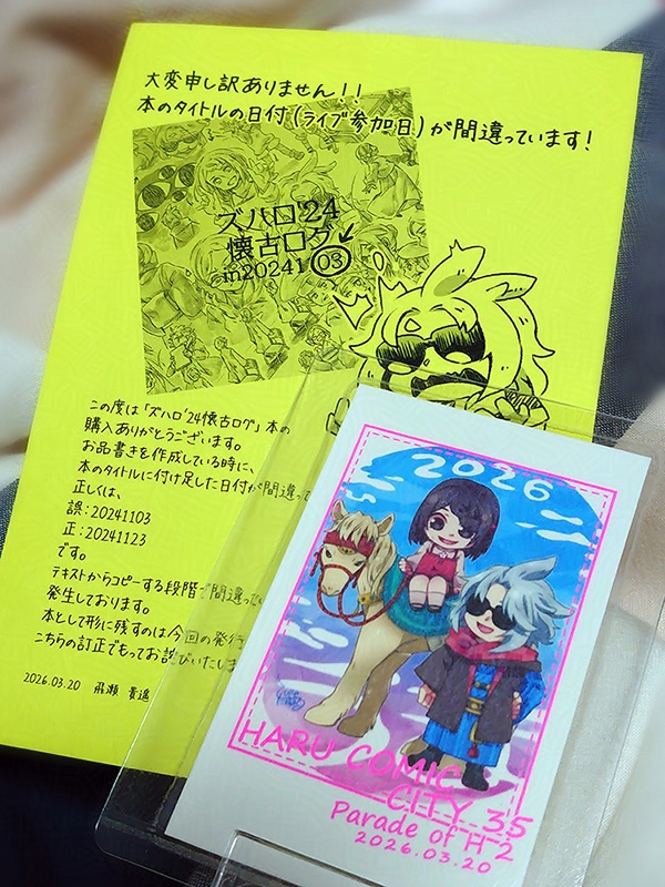 (ペーパーも作りたかったのですが、突然のお仕事爆発により時間が消滅しました…余力があれば、訂正+謝罪ペーパーの裏になにか、描きたい、かも?)
