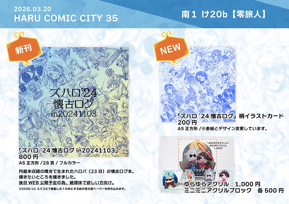 2026/03/20 HARU COMIC CITY 35 南1 け20b 「零旅人」